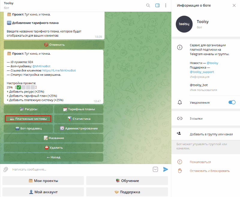 Покажу, как подключить платную подписку на закрытый Телеграм-канал через Toolsy: