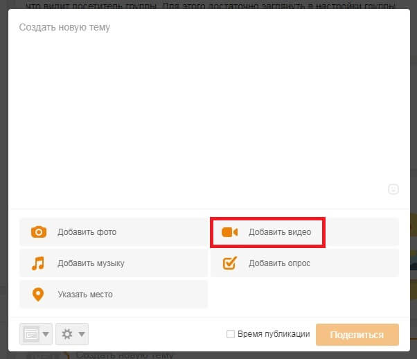 Теперь разберёмся, как прикреплять картинки к вашим публикациям. Открываем окно создания темы и нажимаем на кнопку «Добавить видео»: