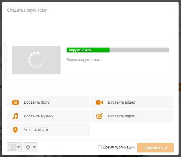 После этого ждём, пока видеозапись загрузится. Время ожидания зависит от размера файла и скорости вашего интернета.
