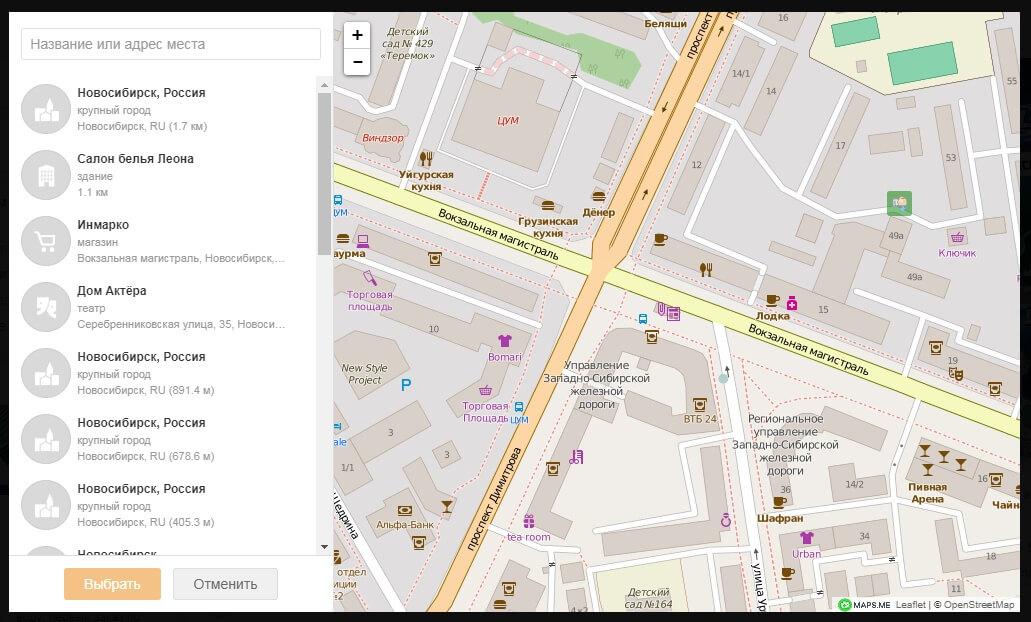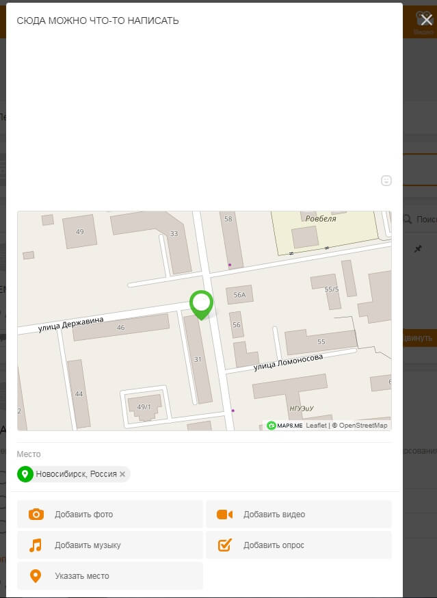 После выбора места, участок карты подгрузится к создаваемому вами посту: