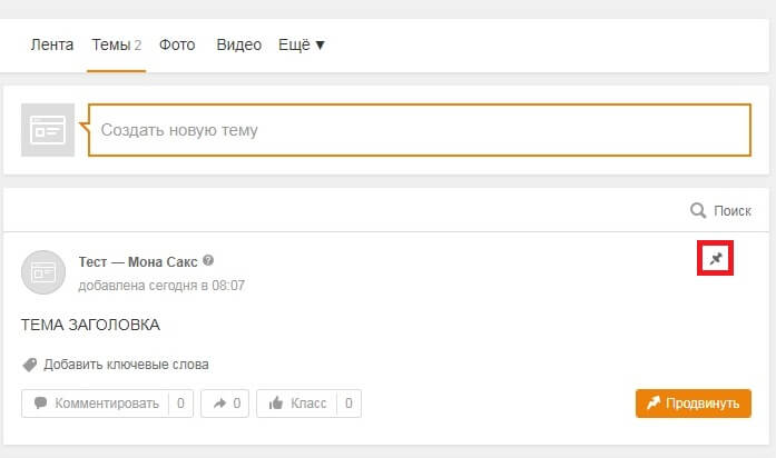 Готово. Теперь ваша запись не утонет в списке других публикаций до тех пор, пока вы её принудительно не открепите.