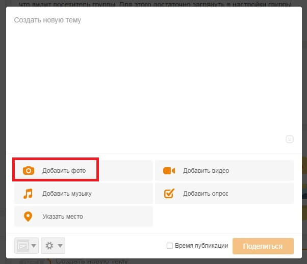 Теперь разберёмся, как прикреплять картинки к вашим публикациям. Открываем окно создания темы и нажимаем на кнопку «Добавить фото»: