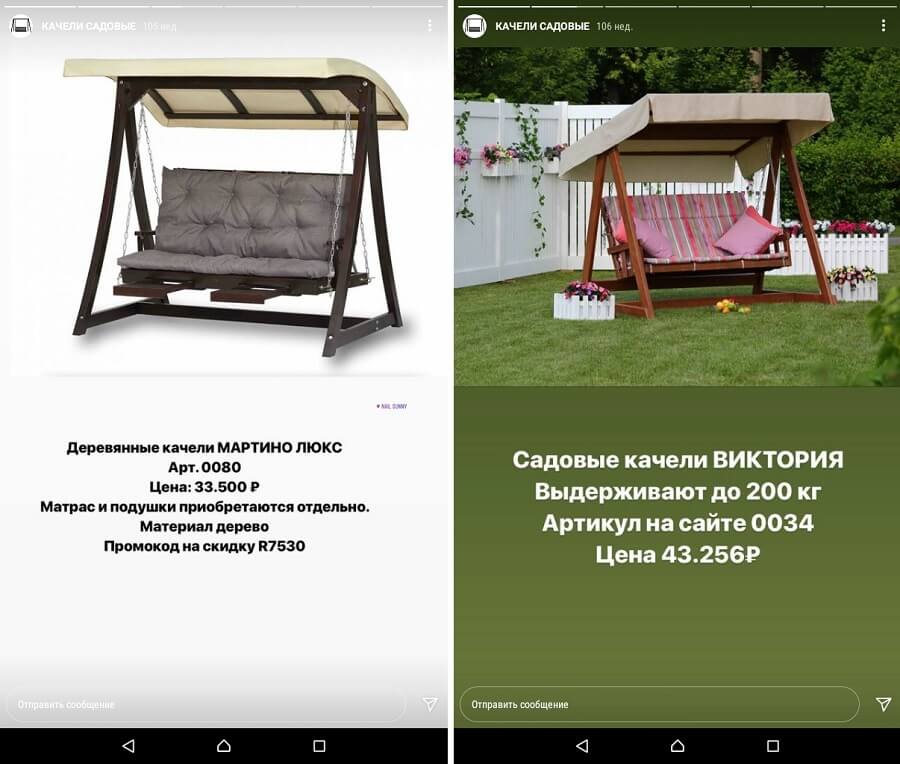 Пример оформления цены в сторисСовет: даже если товары не из одной категории, но размещены в одной папке, сторис лучше оформить в едином стиле. Товары нужно предварительно отделить от фона и сохранить в PNG с прозрачностью. Потом сделать шаблон для оформления и добавлять товары. Если не делать шаблон, то нужно хотя бы определить основные цвета и шрифты.