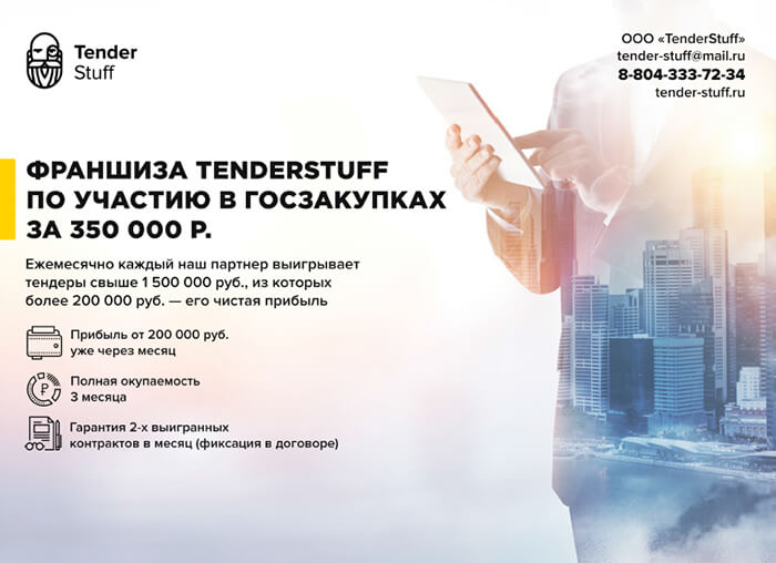Пример — обложка компании TenderStuff для привлечения партнеров по франшизе.