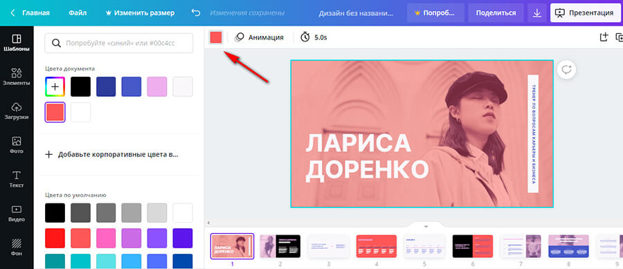 Шаблоны для презентаций Canva хороши тем, дизайн составлен сразу для нескольких слайдов, и это ускоряет весь процесс.