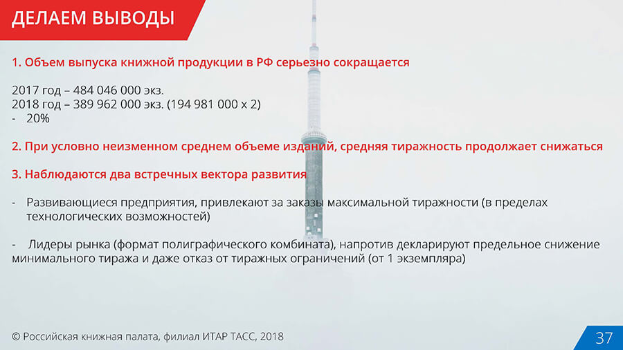 Пример — выводы в презентации по анализу рынка книгопечатания РФ.