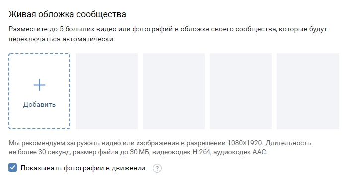 Живые обложки доступны для всех сообществ ВКонтакте.