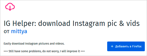 В строку поиска впишите “IG Helper” и добавьте его в Firefox.