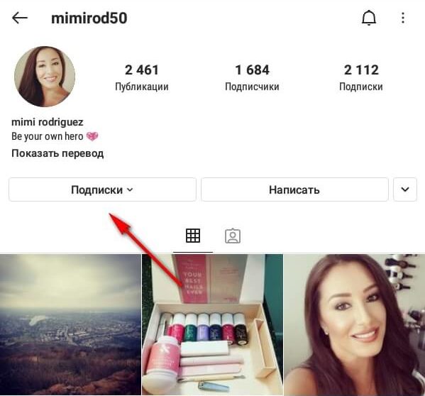 Шаг 1. Заходим на страницу пользователя, чей контент хотим скрыть. Нажимаем на кнопку «Подписки».