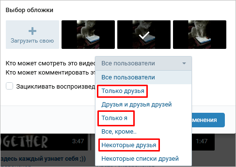 Раньше некоторые видеозаписи можно было скрыть в настройках приватности. Сейчас такой функции нет, но можно полностью закрыть свой аккаунт от посторонних людей. Тогда видео и другие материалы смогут видеть только друзья.