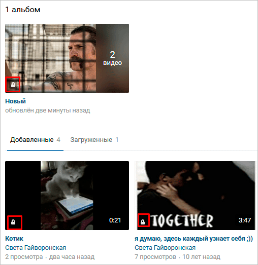 Обратите внимание, что на добавленных видео и на альбоме теперь есть значок закрытого замка – они скрыты от посторонних глаз.