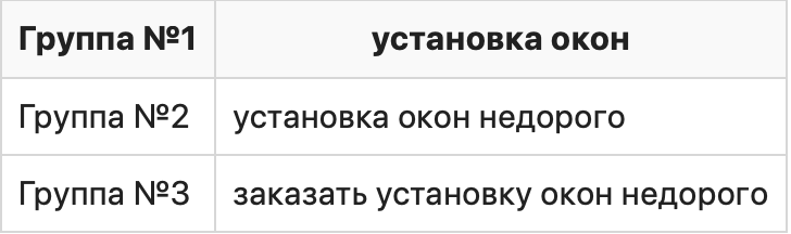 Поясним на примере. Допустим, у нас в кампании есть три группы объявлений с такими словами: