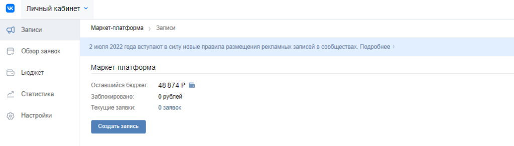 Маркет-платформа позволяет размещать свои собственные посты или репосты в пабликах.