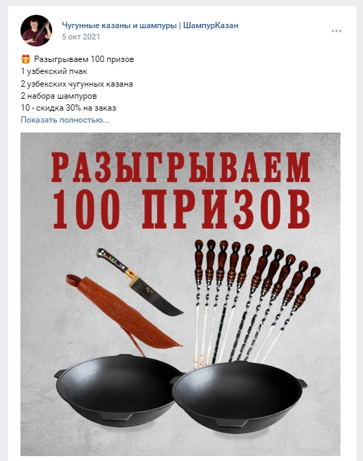 1. Опубликуйте пост, в котором будет говориться о розыгрыше большого количества призов. Например, 100.