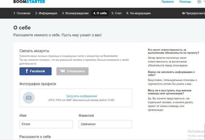 - и пошагово пройдете путь в системе boomstarter по созданию и запуску проекта для привлечения и сбора средств своему детищу.