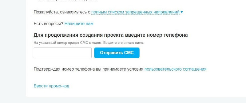 6. После прочтения потребуется подтверждение посредством отправки смс на ваш мобильный телефон.