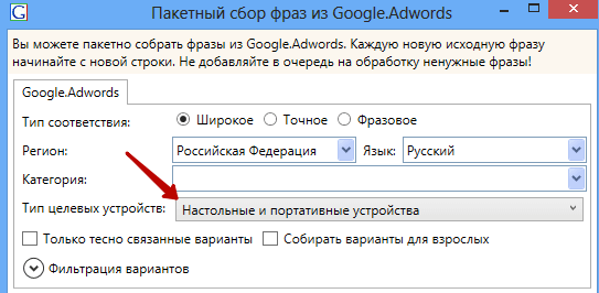 ВАЖНО: Именно на этом шаге вы указываете, какую выдачу мониторить – мобильную или десктоп: