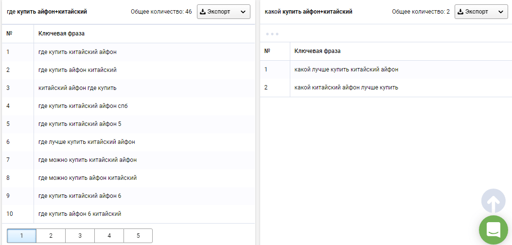 Если нажать на какое-то из популярных слов, можно получить варианты запросов именно с ним. Например, если добавить к фразе [купить айфон] слово [китайский], получим такие варианты: