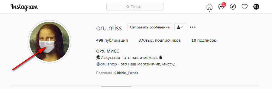 Либо наводим мышку на аватарку профиля на его странице, и тогда тоже появится кнопка скачивания, но скачаются все истории подряд.