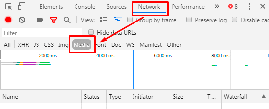 В открывшейся панели выбираем вкладку “Network” и “Media”.