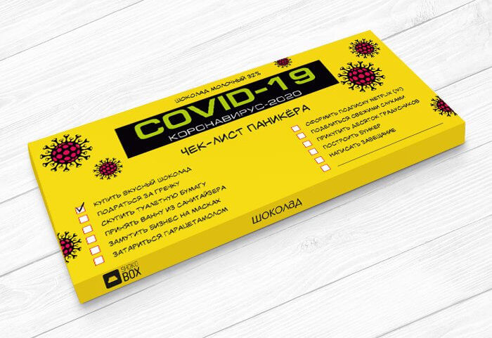 Используют как упаковку для товара. Это креативный способ увеличить продажи. Пример — шоколад «Чек-лист ПАНИКЕРА». На упаковке в шуточной форме написано, что делать во время пандемии Covid (подраться за гречку, скупить туалетку). 100% такой шоколад берут в подарок или ради фото в Инстаграм.