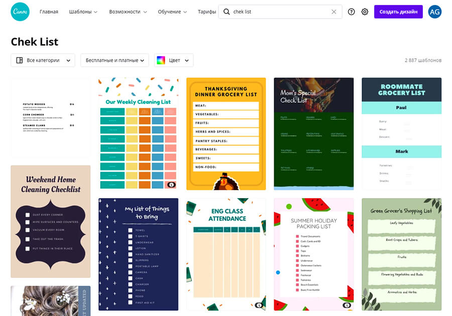 Если есть время и желание создать красивый дизайнерский список — в Canva полно инструментов для этого.
