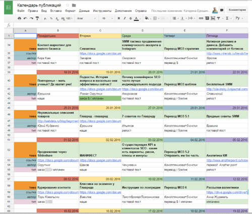 Именно для этого и нужно составить календарь публикаций. Например, Вы определились с темами и разбили их на рубрики, теперь нужно просто распределить их по сетке календаря. Для начала можно набросать черновик на листе бумаги, а затем перенести в файл Exel или календарь Google.