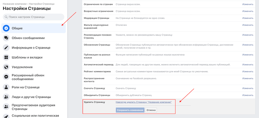 Если ваша организация прекратила свою деятельность или вы больше не видите смысла в бизнес-странице, то вы всегда можете удалить её. Для этого открываем пункт «Общие» в настройках и в самом низу находим опцию удаления страницы. Кликаем на неё, затем жмём «Навсегда удалить страницу» и подтверждаем удаление.