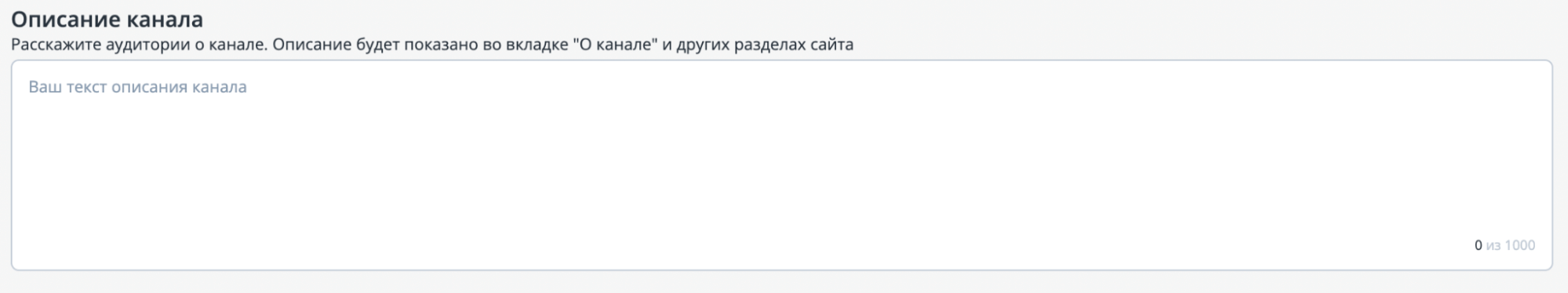 Блок описания поможет новым подписчикам узнать о вас и вашем контенте, поэтому расскажите о главных идеях и ценностях, которые несет ваш канал, а еще добавьте ссылки на другие соцсети. На все это у вас есть 1000 символов с пробелами.