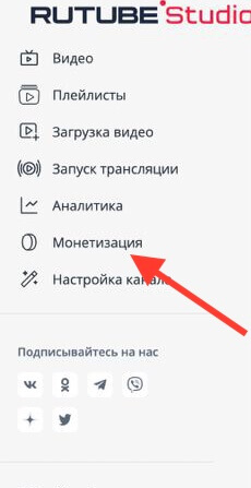 После подтверждения нажимаете аватар, заходите в студию Rutube и нажимаете «Монетизация».