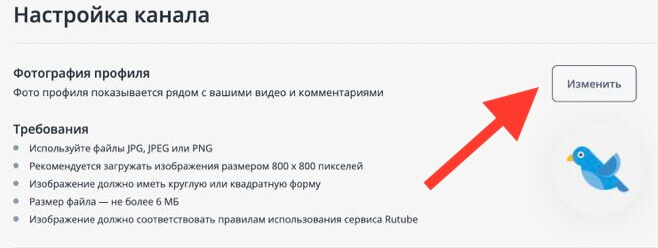 К фотографиям есть несколько обязательных требований: формат JPG, JPEG, PNG, объем до 6 Мб, круглая или квадратная форма, соответствие политике Rutube.