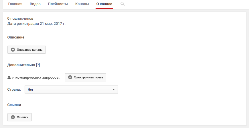 Зайдя в раздел «О канале», можно сделать описание канала, добавить электронную почту для коммерческих запросов, ссылки на сайт или социальные сети. Максимум можно добавить 5 ссылок.