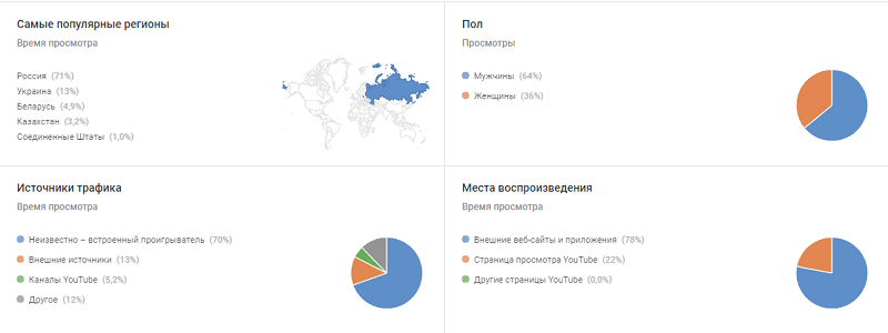 Детально изучив статистику по всему каналу, можно выявить ролики какого формата интересуют аудиторию, какие ошибки допускаются при создании роликов и под какую аудиторию необходимо создавать контент.
