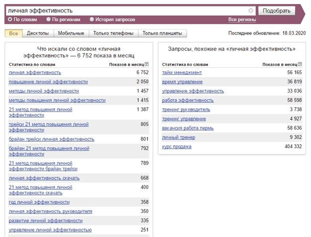 1. Статистика поисковых запросов. Используйте Яндекс.Вордстат и проверьте запросы, который имеет отношение к вашей нише.