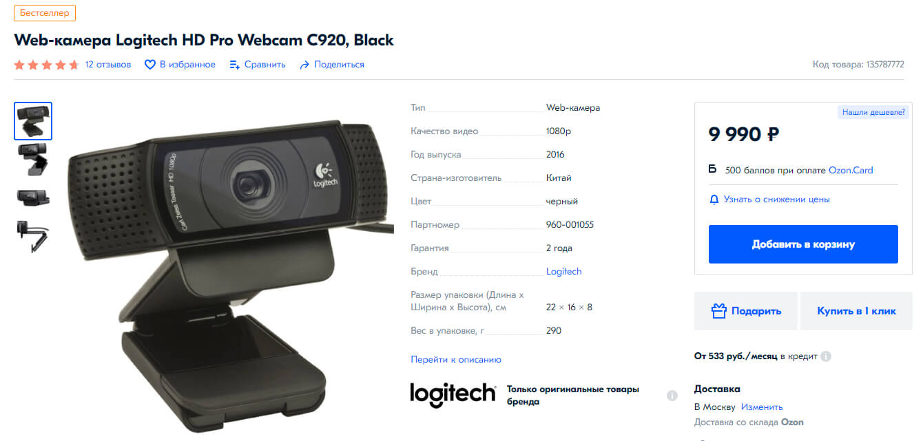 Некоторые видеоблогеры снимают ролики на внешнюю веб-камеру, но нужно подобрать с хорошим разрешением. Неплохая веб-камера — Logitech Webcam HD Pro C920 (можно подобрать другую от Logitech).