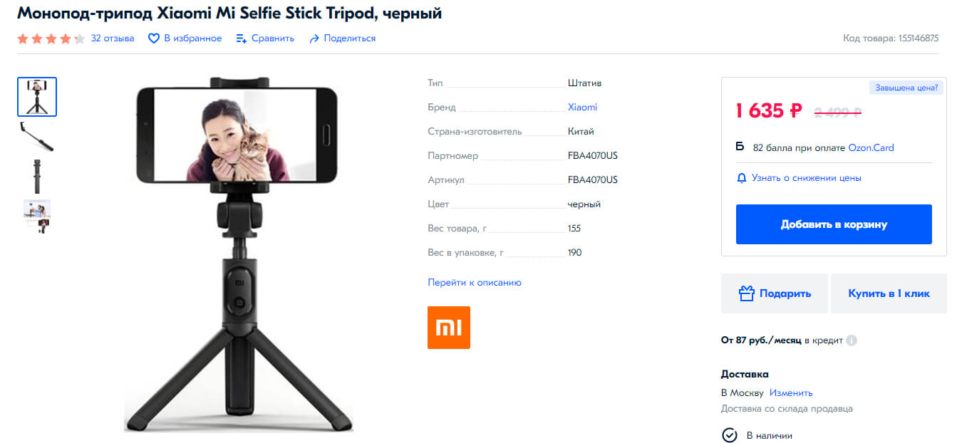 Для смартфона понадобится монопод-трипод. Цена до 2 000 рублей в зависимости от модели. Если вести съемку не в помещении, то подойдет селфи-палка.