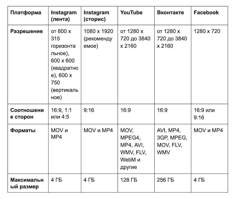Оптимальные параметры видео для соцсетей