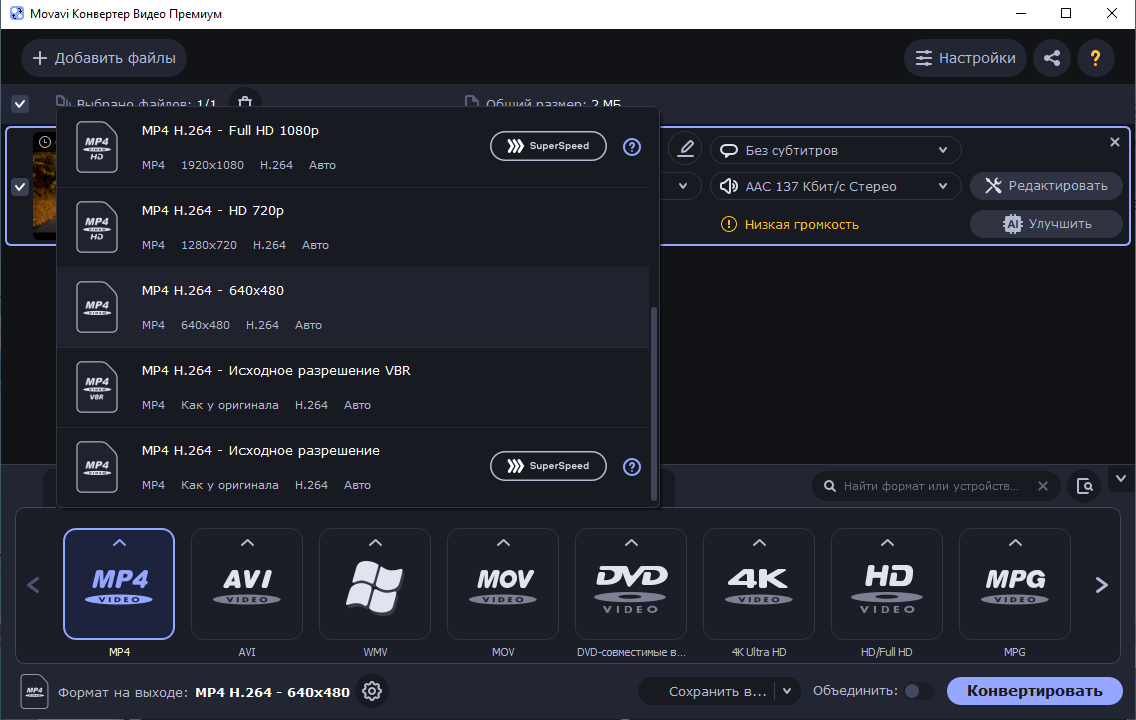 На iPhone видео по умолчанию сохраняется в MOV, поэтому вы можете либо поменять формат в настройках, либо конвертировать его в сторонней программе. Телефоны и планшеты на Android по умолчанию записывают видео в MP4.