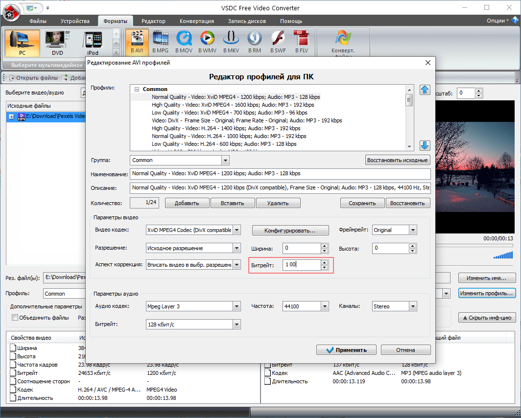 И последний способ уменьшить вес видео – это изменить его битрейт. Однако это самый радикальный метод потому, что качество видео значительно ухудшится.