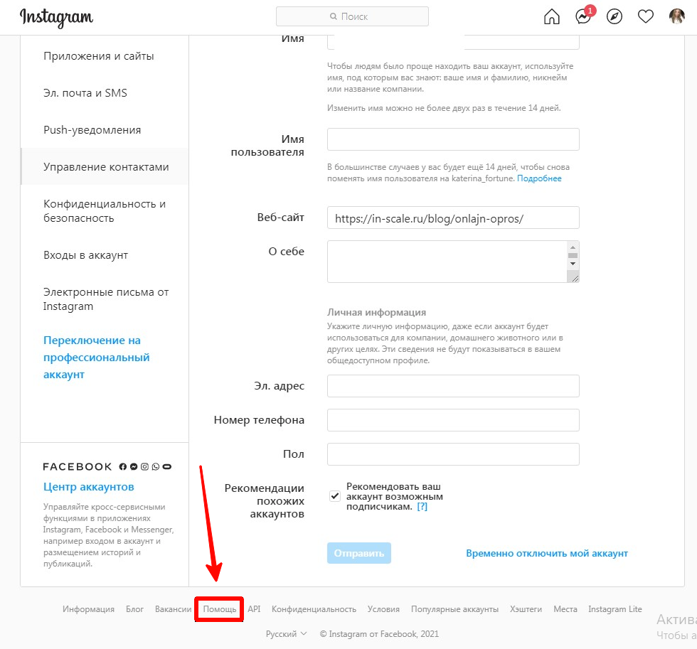 В своем профиле нажимаете “Редактировать профиль”, затем пролистайте страницу вниз.