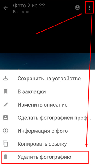 На вкладке “Фотографии” вы уже можете стереть любое изображение. Просто выберите ненужное и тапните на три вертикальные точки в правом верхнем углу. Перед вами появится список действий, которые можно выполнить со снимком. Выберите “Удалить фотографию”, после чего подтвердите ваши действия.