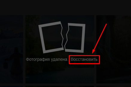 До того как вы обновите страницу или перейдете в другой раздел, снимки еще можно вернуть. Для этого кликните на надпись “Восстановить”. После обновления страницы файлы будут безвозвратно потеряны.