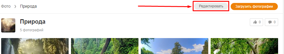 Также попасть в режим редактирования можно, открыв фотоальбом и кликнув “Редактировать”.