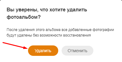 После нажатия этой кнопки появится предупреждение о том, что ни один из снимков, которые находятся в фотоальбоме, невозможно будет восстановить. Это не шутки. Не поможет даже обращение в Службу поддержки. Так что лучше убедитесь, что вы случайно не сотрете важные файлы.