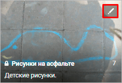 У нас есть ненужный каталог с рисунками на асфальте. Покажем процесс на его примере. Наводим курсор на обложку и жмём на пиктограмму для редактирования.