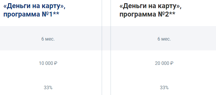 Шаг 2. Сумма кредита увеличивается. Срок для обоих тарифных планов – 6 месяцев. Деньги банк переводит на карту.