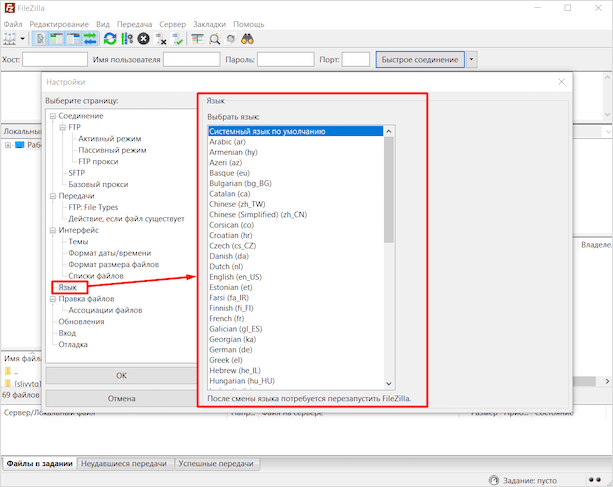 FileZilla позволяет настроить подключение и работу под ваши нужды: