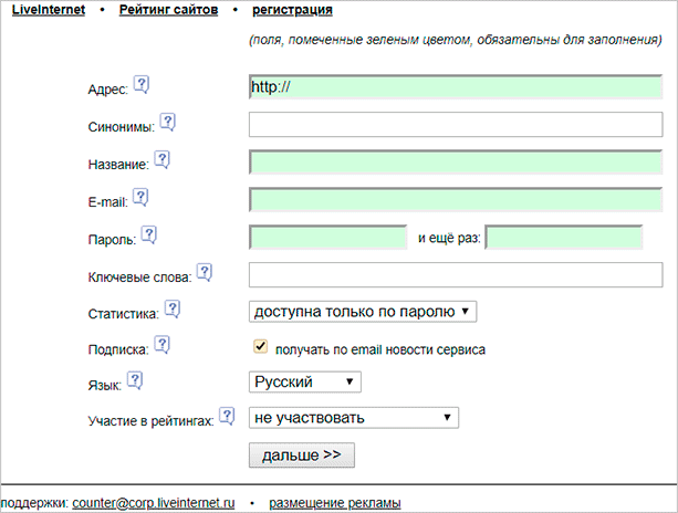 Участие в рейтингах – на ваше усмотрение. При добавлении счетчика не обязательно размещать свой проект в каталоге. Можно пользоваться всеми инструментами сервиса и без этого. Просто отмечаем соответствующую галочку на этапе регистрации.