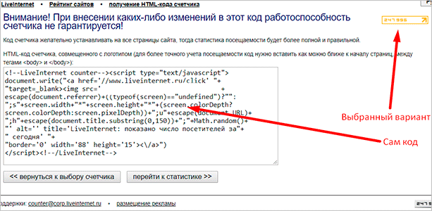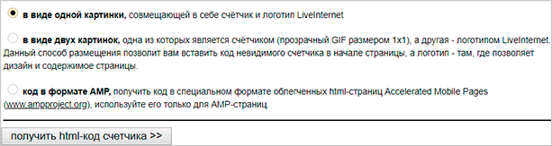 Какой предпочесть – решайте сами, в рамках этой статьи мы расскажем о первом способе – стандартном. Нажимаем “Получить html-код счетчика”, после чего открывается окно с кодом. Его мы и должны разместить где-то на ресурсе.