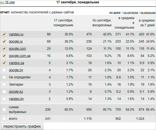 Например, статистика по источникам (поисковым системам) выглядит так.